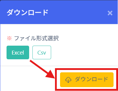 ↓「Excel」または「CSV」を選択して「ダウンロード」します。