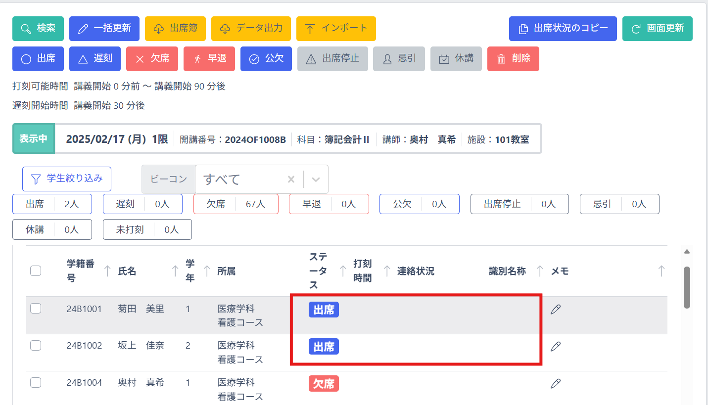 8-3 出席登録:出席データ管理