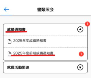 1.「アプリメニュー」>「書類照会」を選択