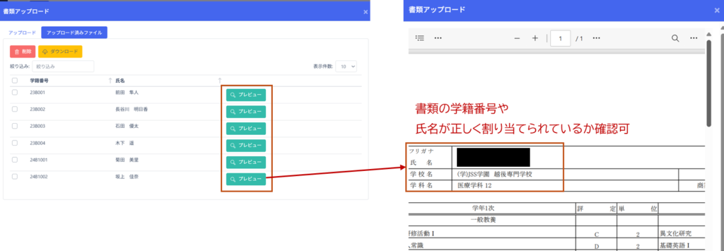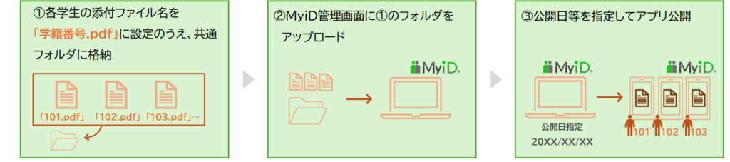 成績通知書や学費関連書類など、アプリユーザ個々に異なる内容のPDFファイルを、