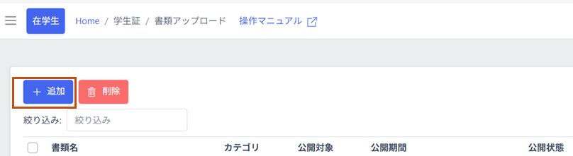 STEP2-1 メニュー「学生/社員証」>「書類アップロード」を選択