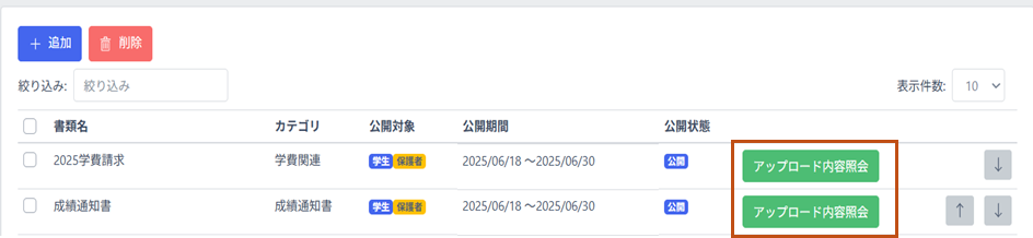 2.以下管理画面で「アップロード内容照会」をクリック